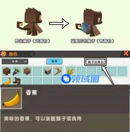 驯服猴子和驯服其它动物的过程看起来差不多,可实际上还是有区别的。这个区别就在于猴子会把道具给玩家,这并不像是驯服的过程,反而像等价交换的过程。相对驯服其它动物来说,驯服猴子的方法还是比较特殊,虽然方法不难,但也算意想不到了。