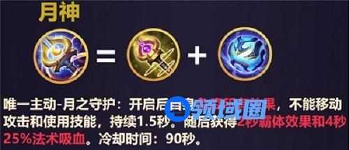 月神这件装备适合法师出(本来辉月也是法装),基础属性提供法攻和减cd,装备主动技能可以免疫所有效果,但1.5秒内不能动、攻击、放技能,之后才有2秒霸体+4秒法术吸血,最适合的应该是貂蝉、高渐离、周瑜、诸葛亮等。