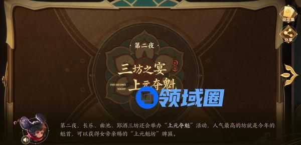 这一部分玩家将会游览上元之夜的长安城中的重要场景,包括长乐坊、曲池坊、郢酒坊三个场景。
