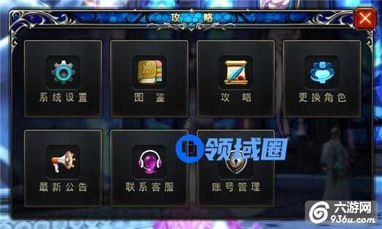 【设置界面】:系统设置、图鉴、攻略、更换角色、最新公告、联系客服和账号管理