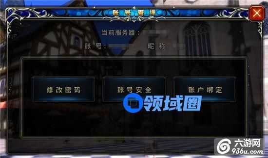 界面上方有游戏角色的具体信息:当前服务器、账号以及昵称