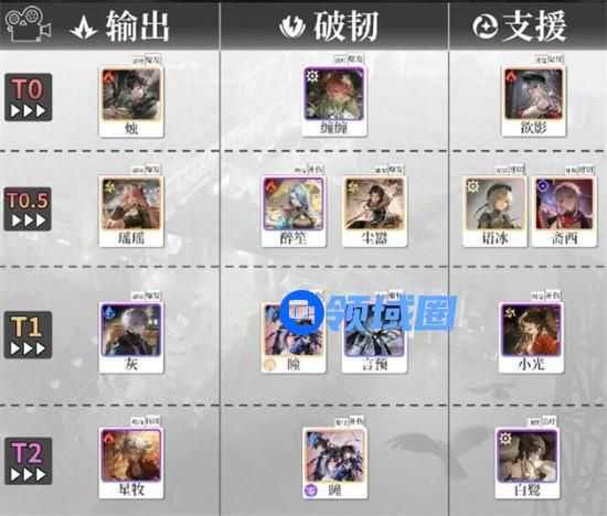 破韧角色:破韧速率>输出倍率>循环速度>操作手感