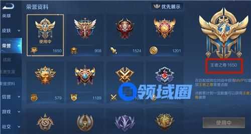 虽然在对战资料无法查看MVP场次,但是在个人主页-【荣誉】-【荣誉资料】界面,寻找下图所示的【王者之尊】图标,选中后就能查看获得MVP的总场次了。