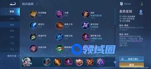 冷静之靴(后期换急速战靴)+金色圣剑+博学者之怒+噬神之书+巫术法杖+回响之杖(有坦克换虚无法杖)