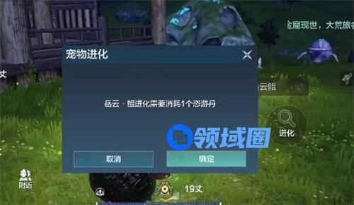 【出战】岳云鲲,靠近岳云鲲NPC后点击右侧的进化按钮,就会出现宠物进化的窗口提示,点击确定就能将其进化为对应阶段。寒冥升到30级,就能进化腾影鲲。腾影鲲升到45级,就能进化为击浪鲲。