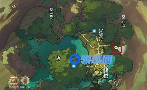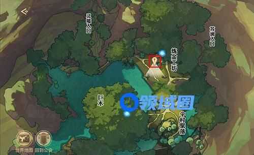 不过玩家不用担心,可以来到这个菇高高这里,它是在蘑菇上面站着的,使用翅膀飞起来就可以看到,然后与之对话,可以完成任务【藏起的故事】得到这个药剂。菇高高的位置如图所示: