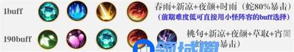 2.【满buff后】高层数/全员妖术、帝锁2技能,SP蛇开局普攻马上切妖术(SP蛇全队爆伤最高,后期有草取技能可额外行动一次),SP蛇先堕化寻香行