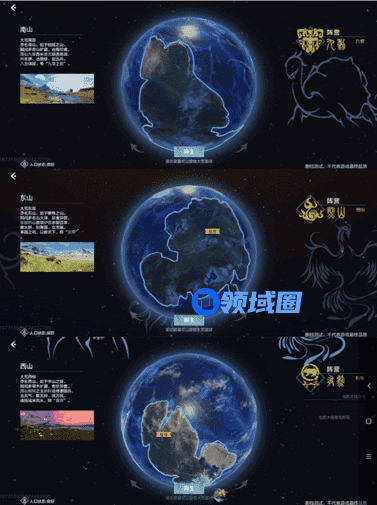 进入游戏之后,玩家需要选择降生地点,也就是之后房屋建造点。在妄想山海这款游戏中,主要分为四块大陆,对应三个阵营。即东山属烈山阵营;西山属有熊阵营;南山属九黎阵营;中山大陆则是混乱区不可安家,不同阵营的玩家以红名相见,胜者则可以掠夺中山上的稀有资源。每片大陆基础物资丰富且相似,玩家可依据喜好选择阵营。如果需要,可以随时搬家换阵营。