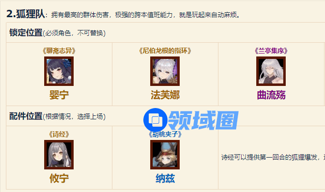 狐狸队阵容搭配: