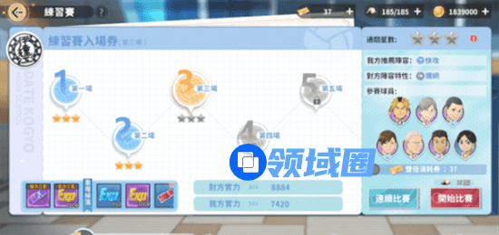 2、比赛实训:此模式集合了众多竞技赛事,供玩家逐一挑战,不仅能够测试阵容实力,还能在获得三星评价时收获球员经验与高级招募券作为奖赏。