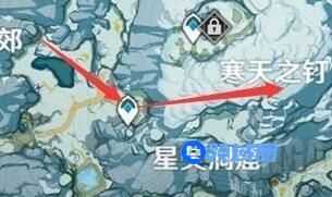 如下图,正面是星荧洞窟的碎片位置,往右上角箭头处走,可找到另外的深赤之石!