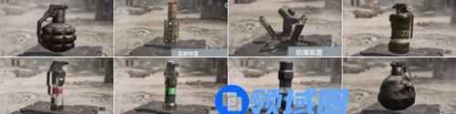 碎片手雷、激光手雷、防爆装备、烟雾弹、闪光弹、震撼弹、电磁脉冲手雷、粘性手雷