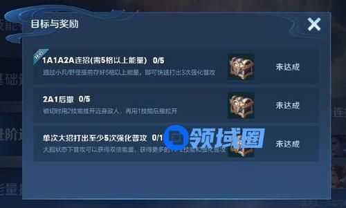 每一关都有具体的要求(这个可以点击目标与奖励查看),以司空震为例子,5格以上能量进行1a1a2a的连招、2a1后撤连招、单次大招打出至少五次强化普攻,这些小任务都完成的话都有奖励可以领取。