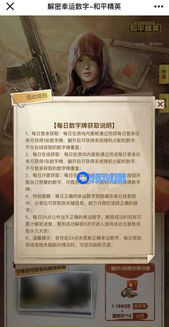 4、特别提醒:每日正确的幸运数字就隐藏在每日线索图中,分享后可获取到关键信息,助力许愿时选择正确的数字