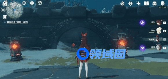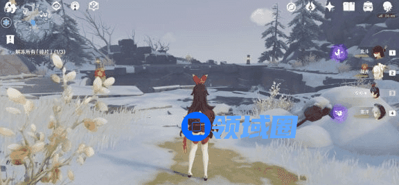通过击碎雪山地上的红色石头来解锁3个小碎片和山顶上的1块大碎片,随之解封通向雪山顶端的道路