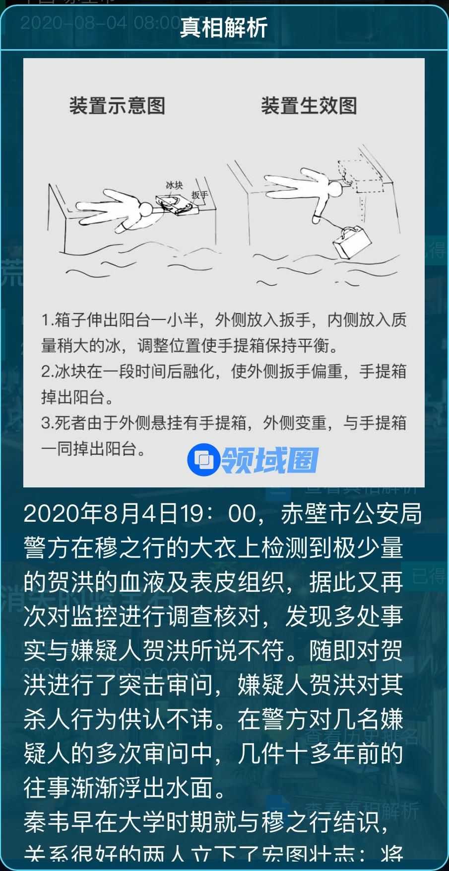 这次案件果真如小编我推理的那样,利用了冰块延时从而制造不在场证明的方法,来达到自己杀人的目的。具体的手法跟小编推理的稍有出入,但是手法的大体思路是相同的,感兴趣的欢迎查看小编的上一篇相关攻略文章。-----》》犯罪大师尘封的往事案情分析