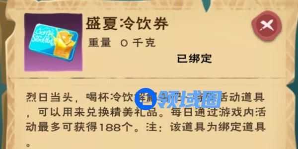活动详情:烈日当头,谁不想来杯冷饮解暑?活动期间,各位探险家们可以在游戏内砍树、挖矿、采集、击杀部分动(怪)物,就能够有机会拾取到盛夏冷饮券。
