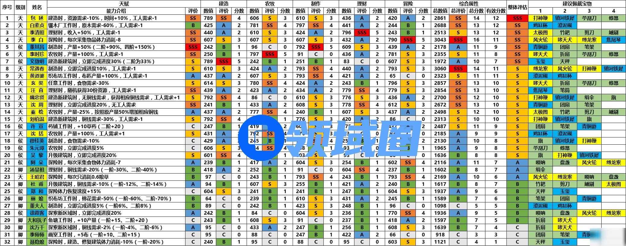 具体的能力和效果请各位玩家们自行对照图中的查看。