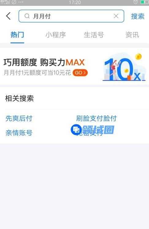这时我们返回支付宝的首页,搜索框中输入“月月付”,点击进入,然后授权登录并购买就可以享受月月付。在购买支持月月付的商品时,可以先付一部分,尾款按月慢慢付,有一点花呗的感觉。