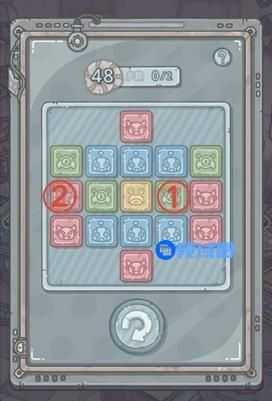 然后让周围所有的方块全部变成一个颜色,要求是在规定步数之内,让当前所有方块变为同一种颜色,才能算通关。玩家们通关即可获得白蝌蚪。