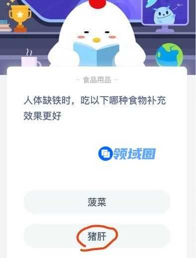7月26日蚂蚁庄园答案题目:人体缺铁时吃以下哪种食物补充效果更好