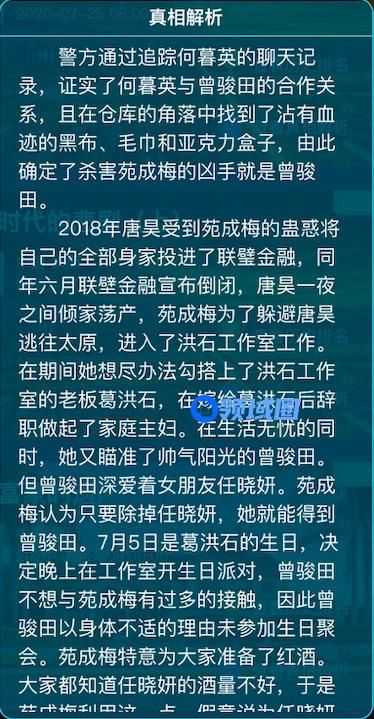 该案跟小编推理的也是大致相同,虽然说案件情节复杂,看似繁杂,但其实官方给出的破案信息也是相当的足了,有兴趣的可以看看小编之前的攻略文章。