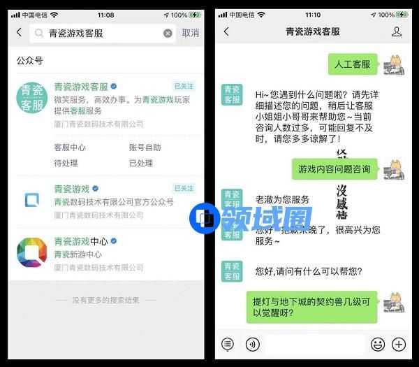 步骤1:微信搜索框中搜索“青瓷游戏客服”