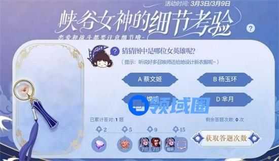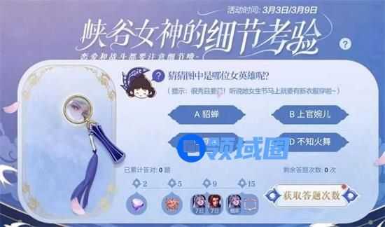 王者荣耀峡谷女神的细节考验活动中,累计答对题目可以领取到桂冠女神头像框等好礼,那么王者荣耀女神的考验答案是什么?游戏宝小编为您带来王者荣耀女神的考验答案大全。
