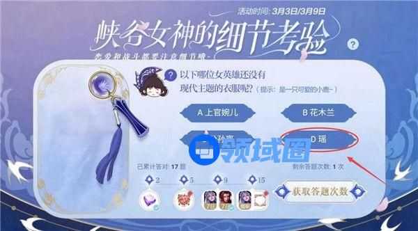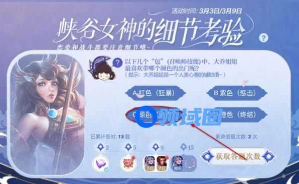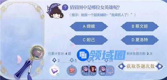 活动奖励:完成登录、对局、使用英雄-露娜参与对局等任务,即可获得答题次数。累计答对题目可获得桂冠女神头像框等好礼,还有机会得露娜永久英雄。