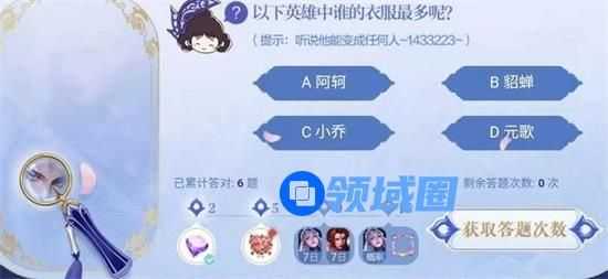7、以下英雄中谁的衣服最多呢? 答案:D.元歌