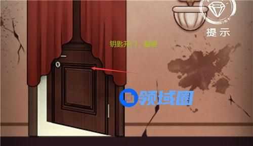 7、场景二,点击红色地毯右下角,点击明显有颜色差异的地板,输入:465281,得到钥匙,打开场景一的门