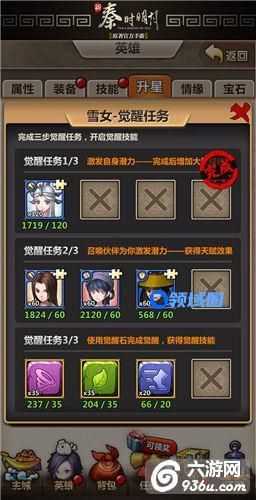 要觉醒雪女首先要完成三个觉醒任务,任务完成后即可开启觉醒技能。