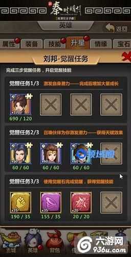 要觉醒刘邦首先要完成三个觉醒任务,任务完成后即可开启觉醒技能。