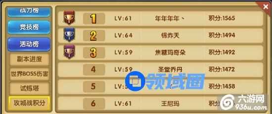 攻城战积分排行榜:攻城战为当前游戏中的一大特色玩法,攻城掠地战无不胜,参与攻城战更会获得攻城积分,积分排行一战成名。