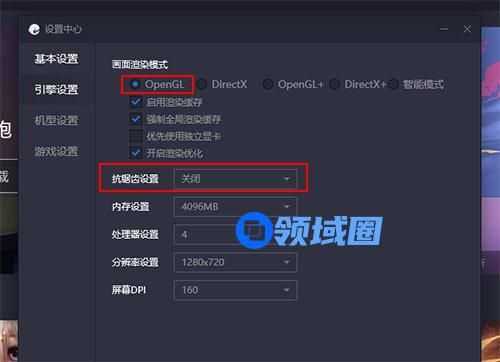 选择引擎设置,然后画面渲染模式里面,玩家可以选择这个OpenGL,然后把这个抗锯齿的设置,选择关闭。