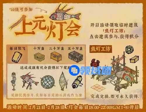 活动开启时,获得临时建筑【鱼灯工坊】;
