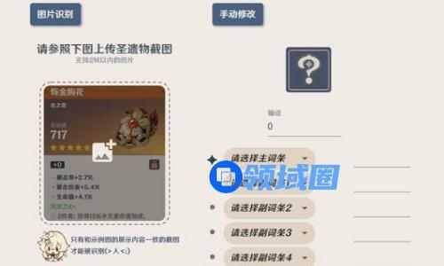 操作方法:只需要把自己圣遗物的截图传到左边的框中就可以对圣遗物进行评分,如果截图不方便的话,也可以在右侧手动输入自己圣遗物的相关属性。