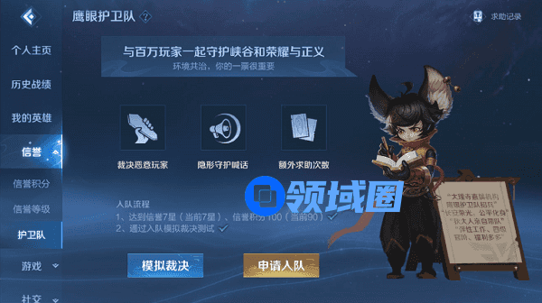 王者荣耀鹰眼护卫队有裁决恶意玩家、隐形守护喊话、额外求助次数等权限,因此很多玩家想知道王者荣耀鹰眼护卫队怎么申请?王者荣耀鹰眼护卫队怎么加入?游戏宝小编为您带来王者荣耀鹰眼护卫队申请加入方法。