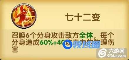 SP技能则是七十二变,大圣召唤6个分身攻击敌方的全体,每个分身可以造成60%的物理伤害,堪称破防必备英雄-齐天大圣。实力强横,不容小觑。解锁条件:星级达到1星后解锁该技能