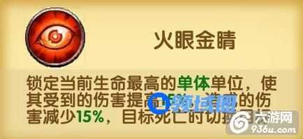齐天大圣不仅仅拥有强悍的攻击力,而且还配置了专属技能,火眼金睛,可以直接锁定地方生命最高的单体单位,被锁定的英雄受到的伤害提高15%,同时被锁定的目标对我方造成的伤害减少15%,此消彼长,在战斗时该技能的锁定可以最大限度的灭掉对方一名英雄,而且目标死亡时该技能可以自动切换敌方目标,继续锁定。