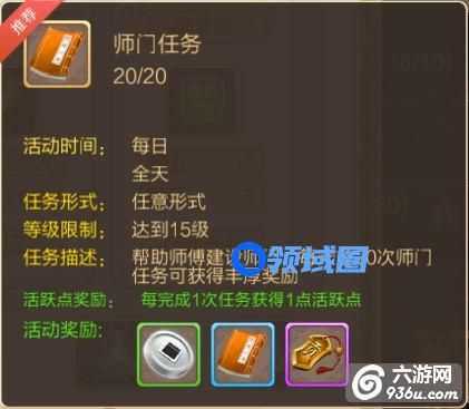 《仙武》的师门任务的奖励主要在经验,钱的话很多时候是赔银币的,也没有物品奖励。需要手操,但是任务时间相当短,十分钟搞定,奖励的活跃度也比较高,综合来说是性价比很高的任务。