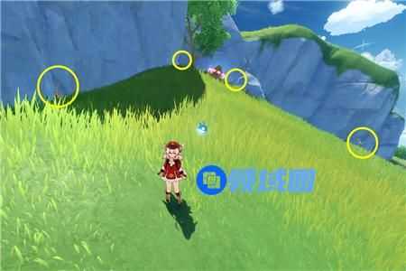 鹤翼的宝藏在归离原南边,需要点燃四个火炬开箱子,火炬位置如图(摄影模式真好用),第二个把宝箱后面的石头打碎就能看到