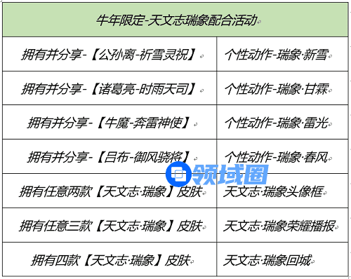 温馨提示:喜欢牛年限定皮肤的玩家,别忘记参与【买年货装饰峡谷活动,得牛限皮肤优惠券】(活动开启时间请随时留意官网公告);拥有2/3/4款牛限皮肤获得的额外奖励,则在【瑞象送福】活动对应面板中领取;