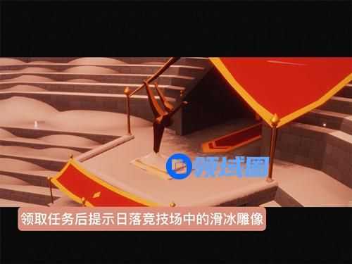 2、动画提示任务地点在日落竞技场的滑冰雕像那,这是梦想季新增的一处建筑;