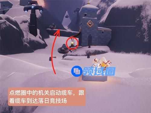 4、点亮机关开始乘坐缆车,直接到达日落竞技场;
