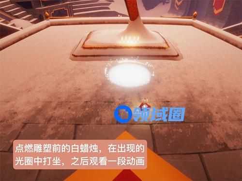 5、出门后点亮雕塑前方的白蜡烛,进入光圈打坐观看动画;