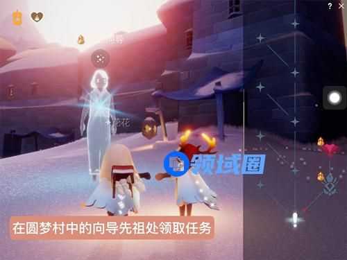 1、先去梦想向导先祖那接取任务,点击第一个感叹号过剧情动画;