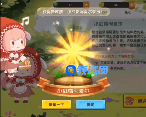 礼包内容:迷你币*3000、小红帽阿夏尔*1、惊喜礼包*20