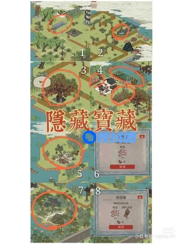 5.路边小径。在小图5.6.的位置。清理4周的杂草进入后点击路边小径,交付相应物品,可获得金画轴。