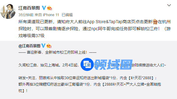 所有渠道现已更新,请知府大人前往App Store&TapTap商店页点击更新在杭州探险时,可以跟着剧情逐步探险,通过npc阿牛哥完成任务即可解锁松江府!(游戏等级需37级)